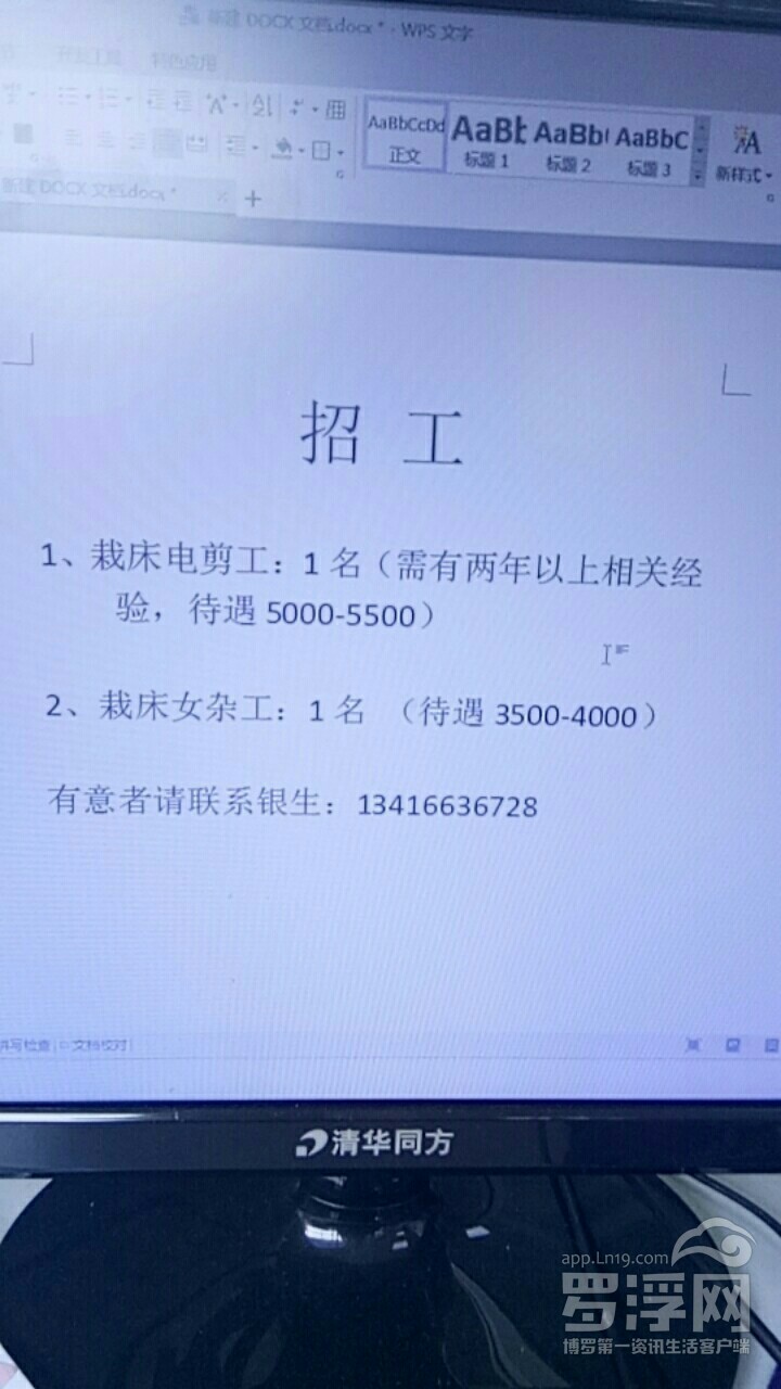 招聘:电剪工:2名