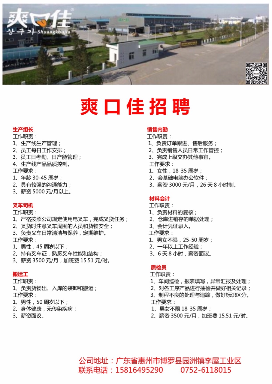 品质检验员两名!