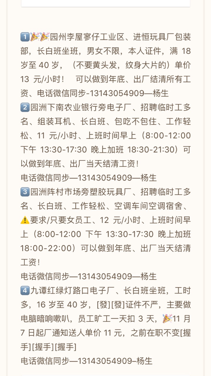 工厂大量招聘临时工、寒假工
