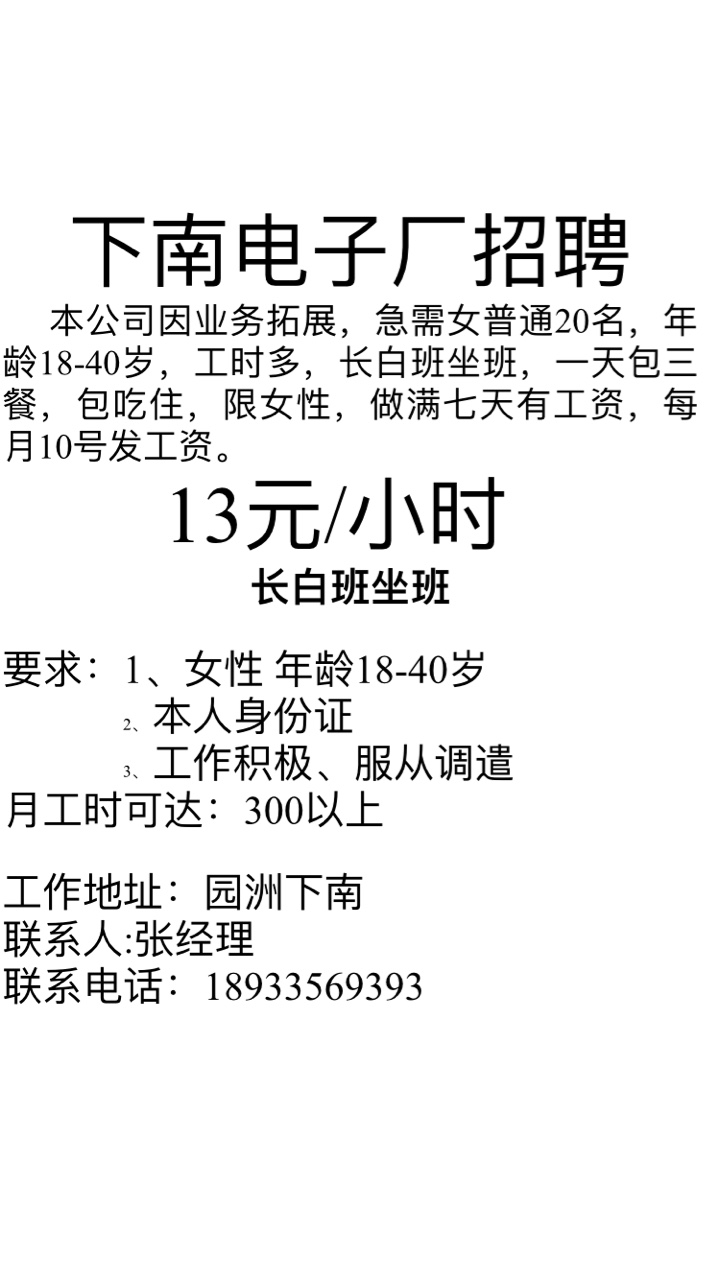 下南附近电子厂招聘,工时多,想赚钱的来
