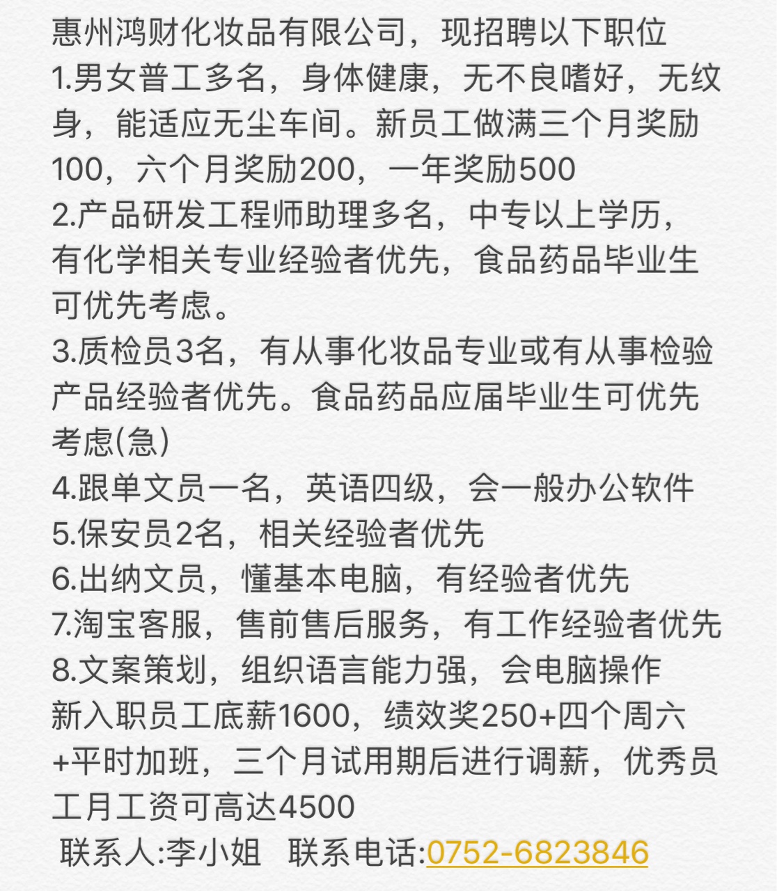 惠州鸿财化妆品有限公司