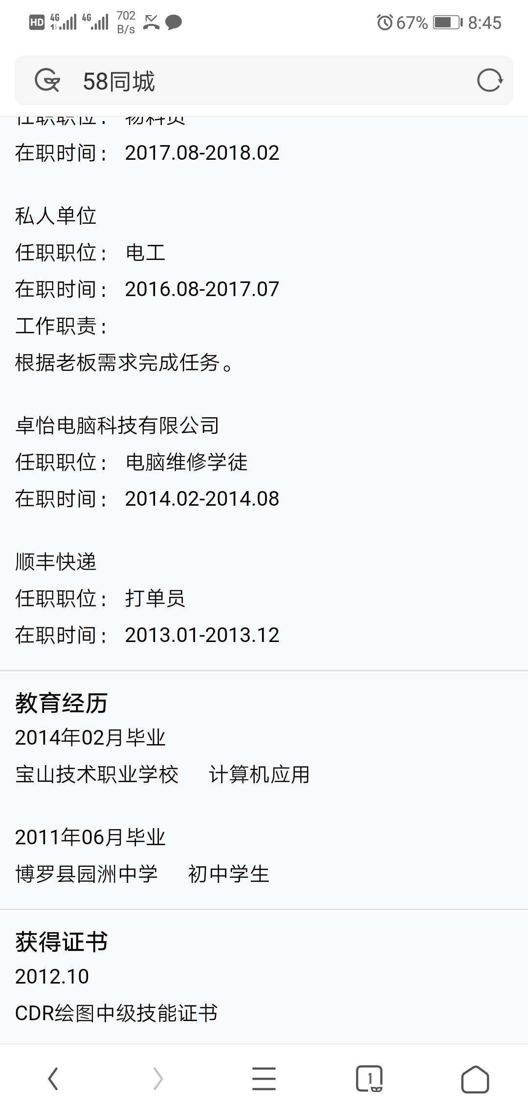 求工作,24,男,5年工作经验