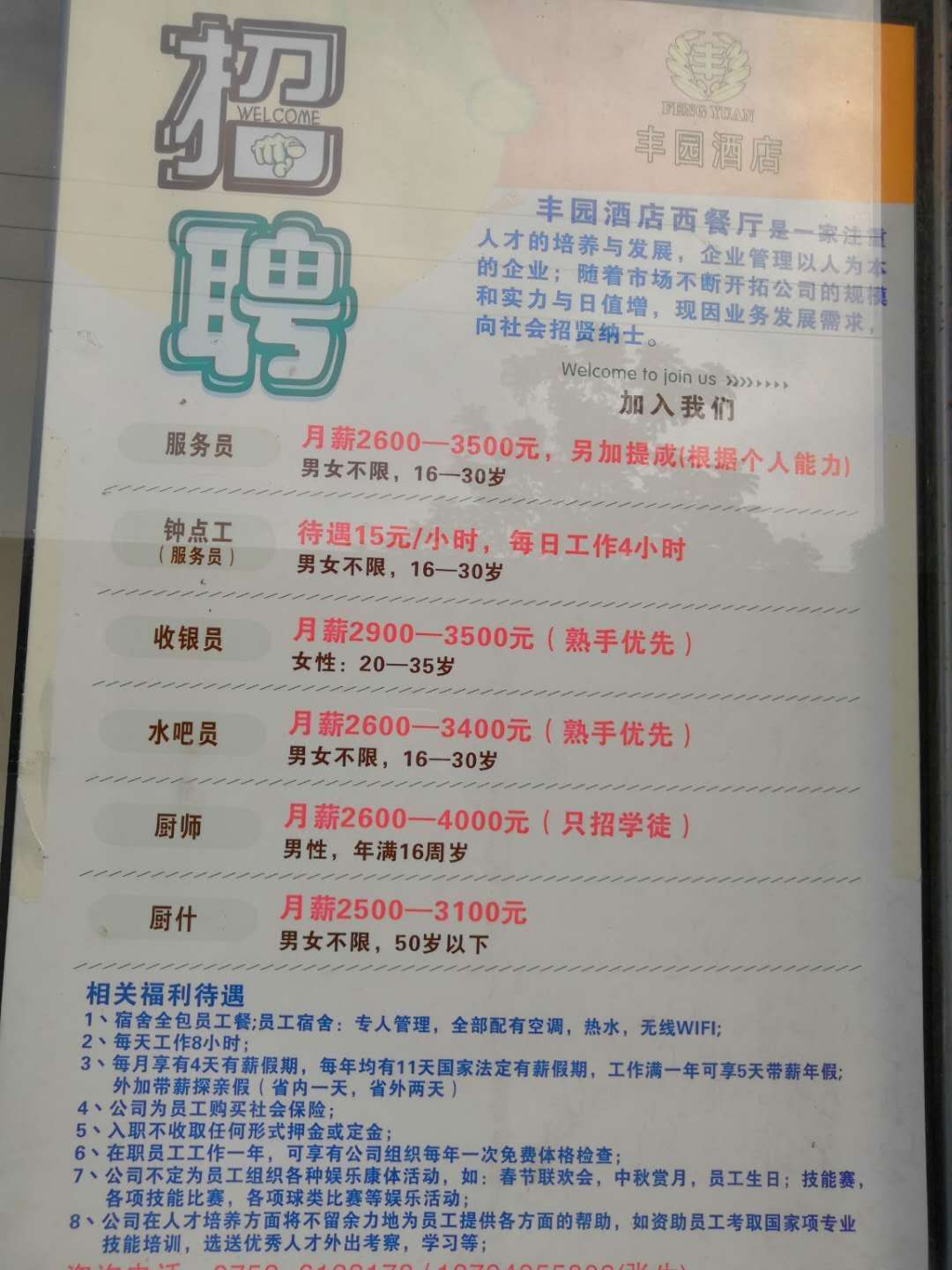 备注:服务员工资2800起,熟手面议