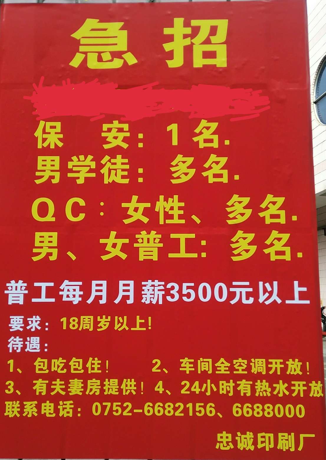 欢迎你的加入!(本厂地址:下南刘屋永昌路31号即中心花园门口对面)