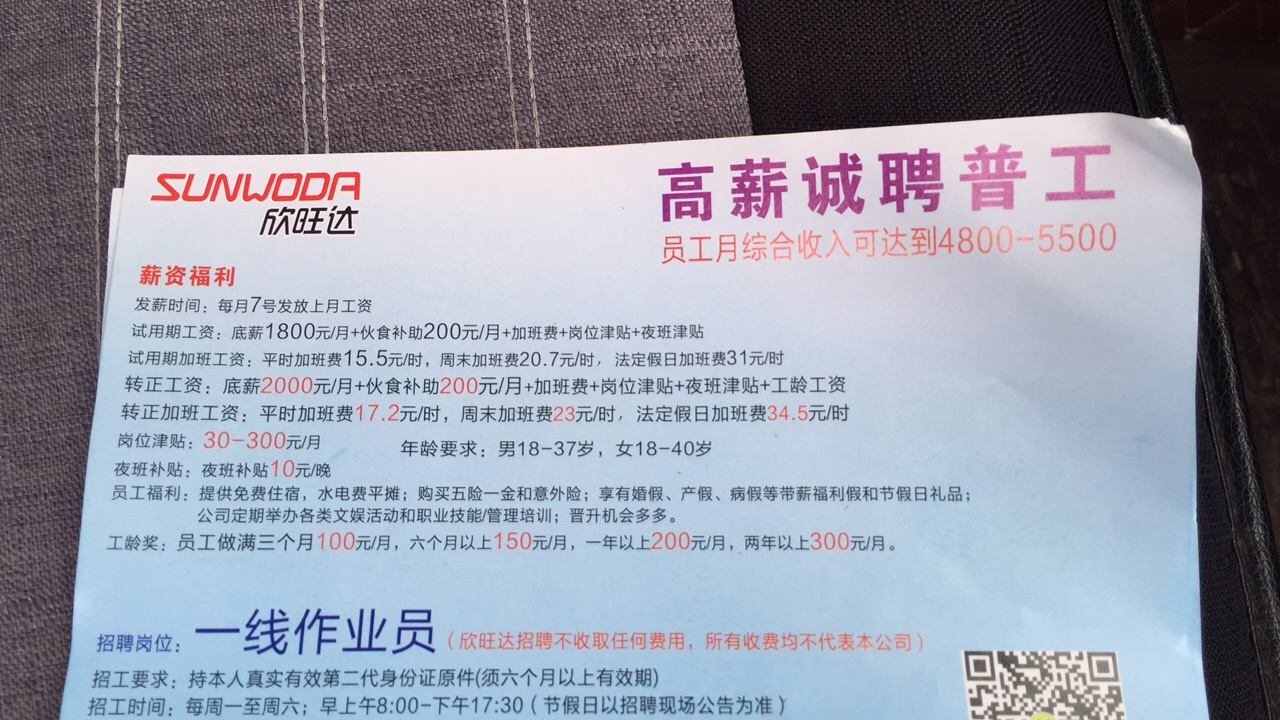 欣旺达直招普工