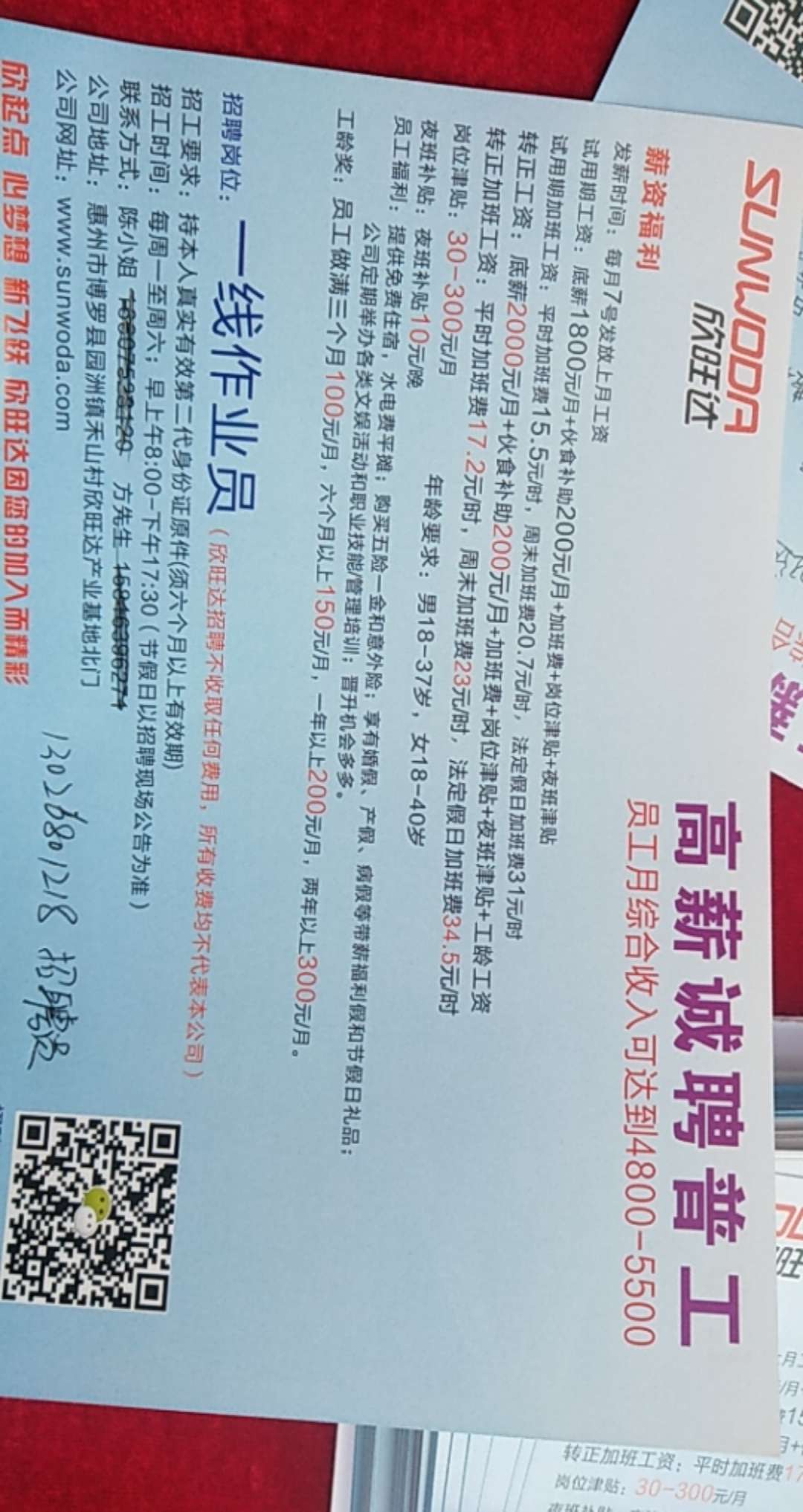 欣旺达普工直招:13026801218
