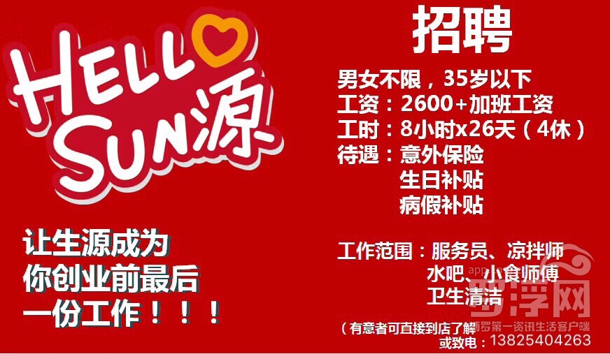 园洲花园生源美食招聘水吧服务员