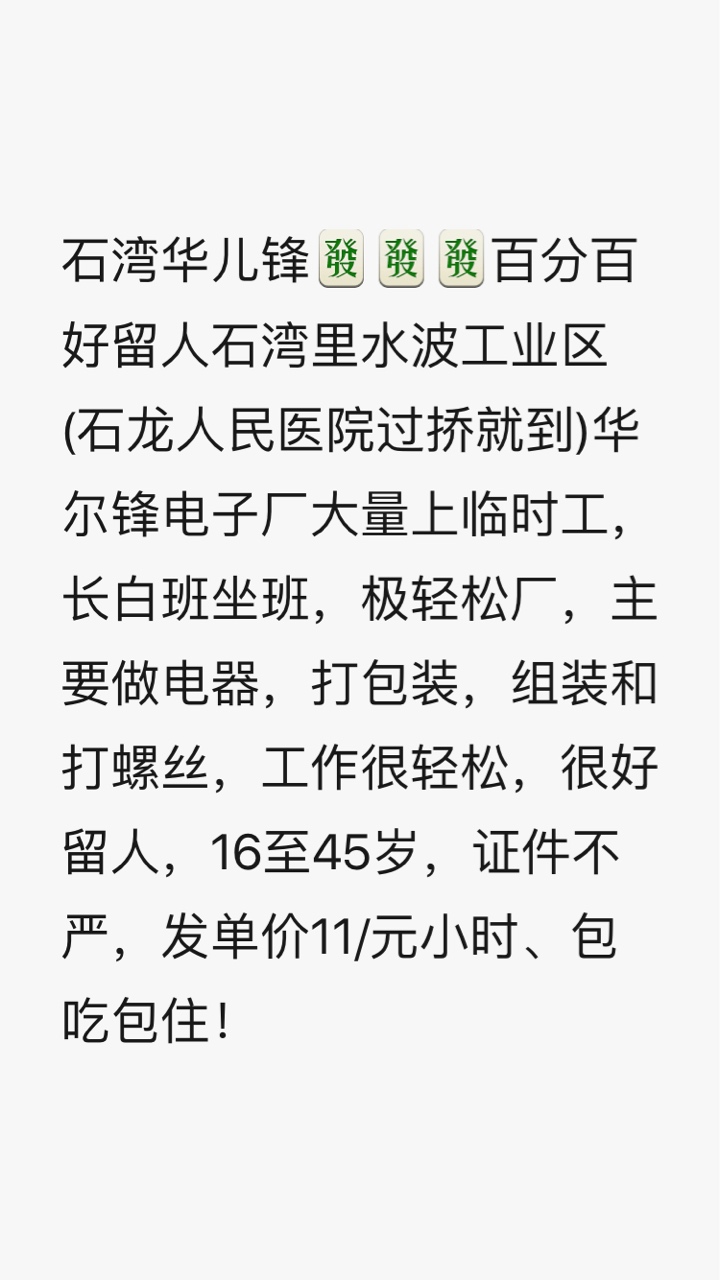 今日临时工最新招聘信息
