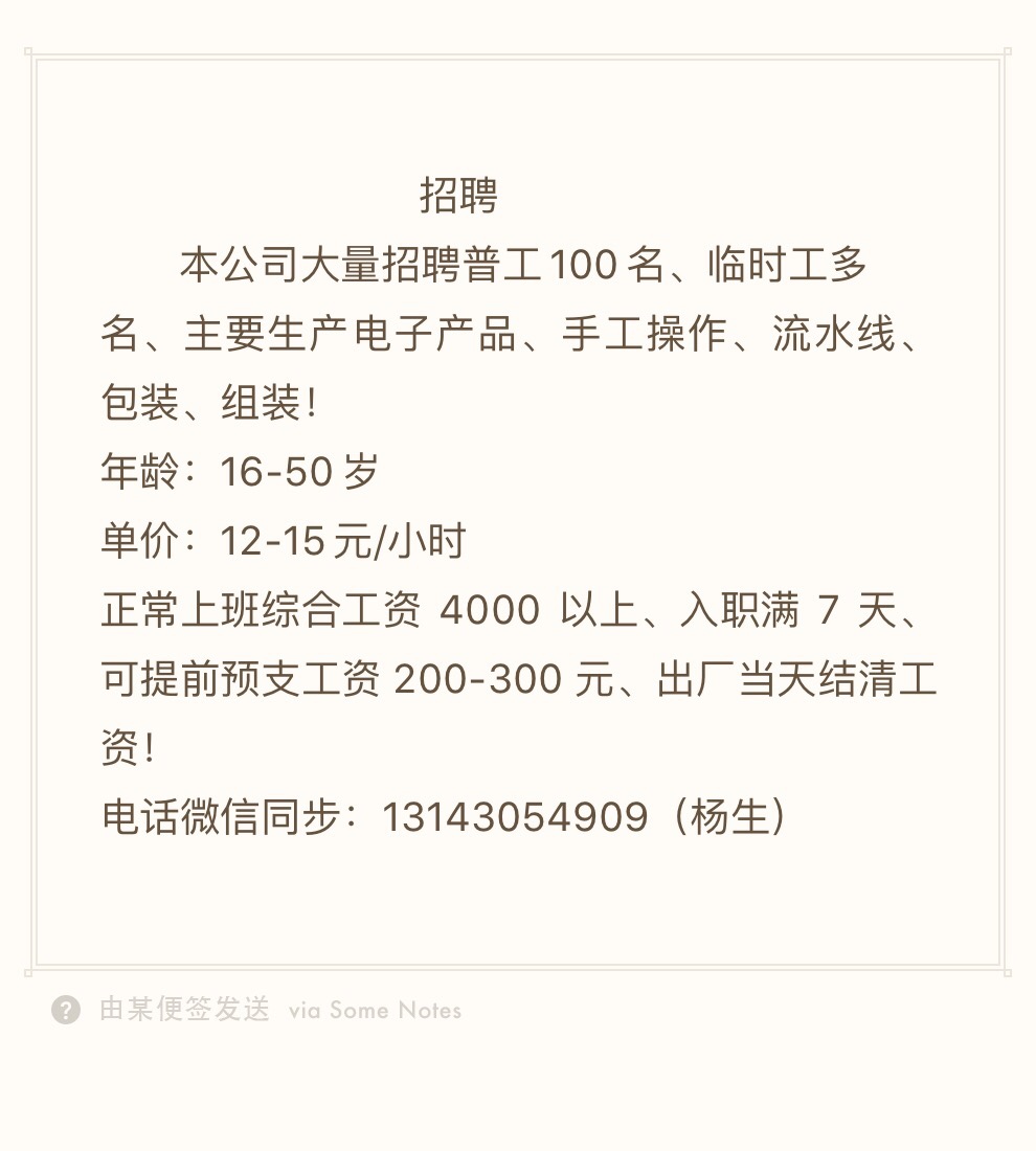 石排、石湾、园洲大量招聘临时工