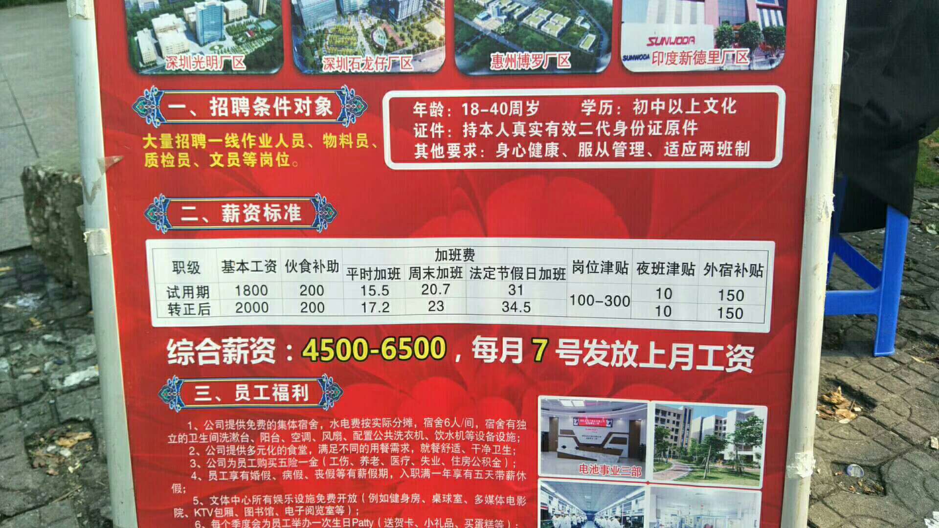 欣旺达精密塑胶事业部直招大量组装部,注塑部员工,品质部QC