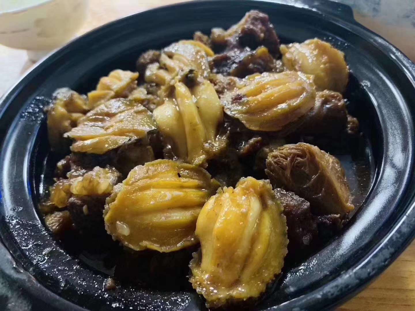 这个季节的鲍鱼肉非常肥,壳洗干净一起炖汤,补钙、明目,有滋阴补肾功效,补而不燥的海产,鲜甜美味[色][色]