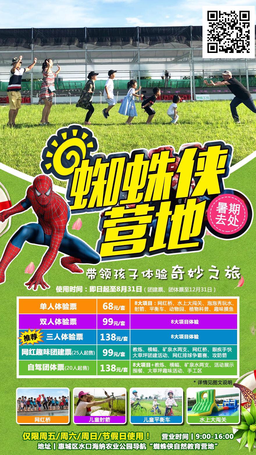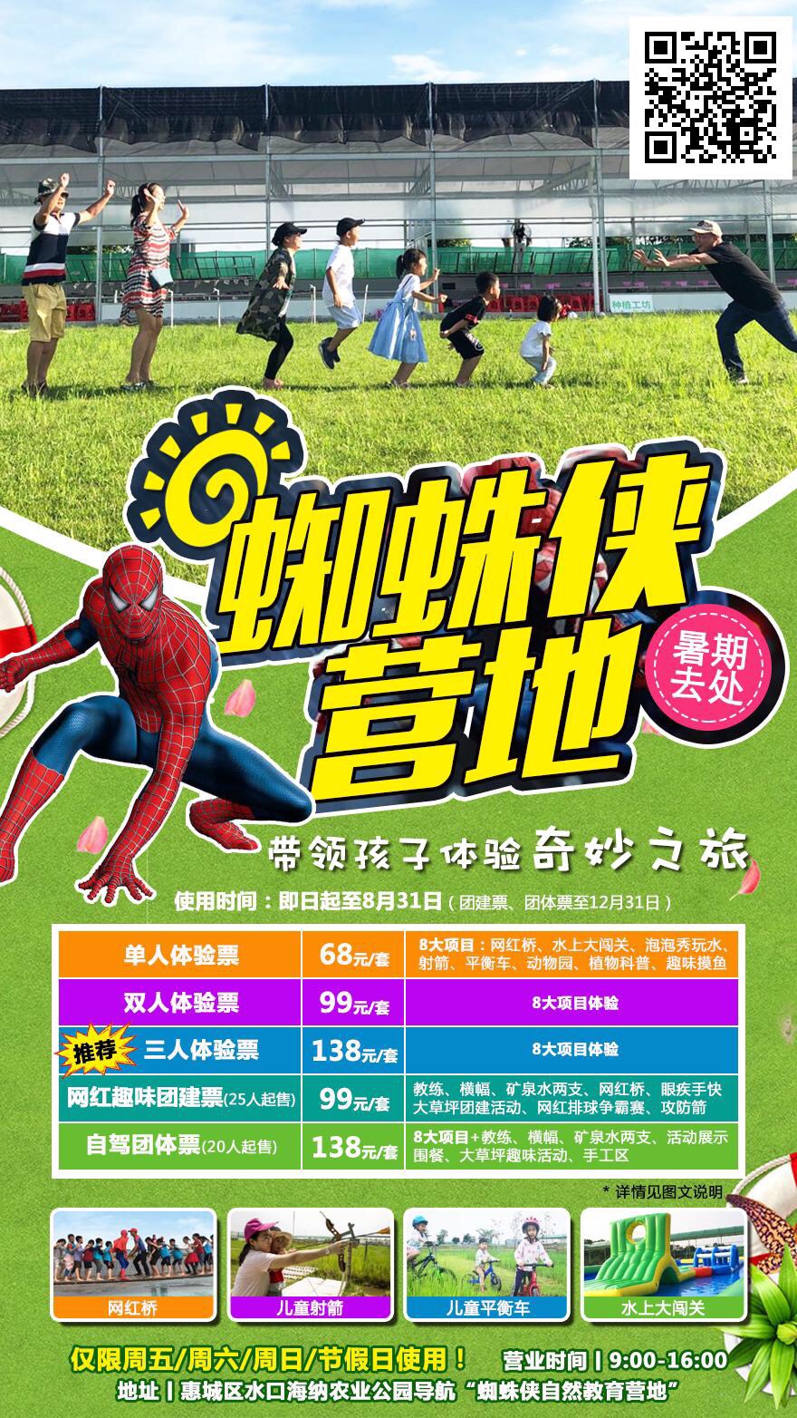 [红包]暑假不要宅在家!蜘蛛侠营地,玩转惠州网红教育营地!一次体验8大项目~在体验中学习!在实践中成长!