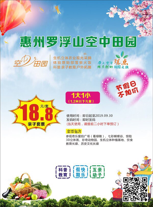 【暑期亲子游首选空中田园】罗浮山空中田园欢乐多多!亲子套票仅需18.8元!欢迎扫码下单购买[勾引]