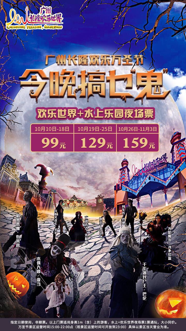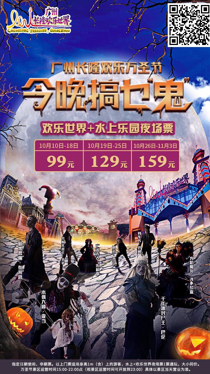 【今晚搞乜鬼】广州长隆2019水陆双园万圣节成人票99元(夜场15:00-22:00)点击长按图片里的二维码识别下单购买即可咨询热线15217849138(微信同步)