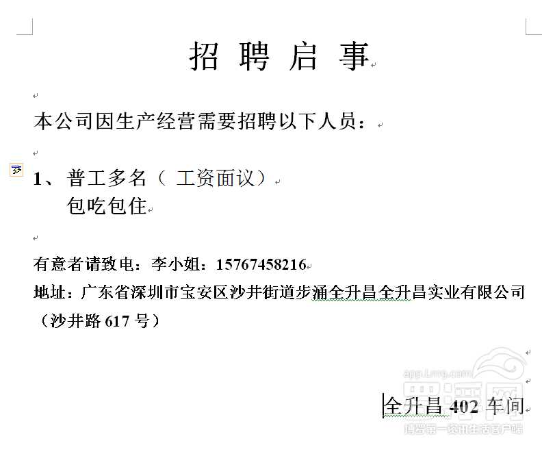 振德五金厂招聘QC,普工,深圳电镀厂大量招聘普工多名