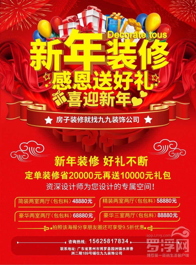 园洲九九装饰公司四周年店庆优惠大酬宾