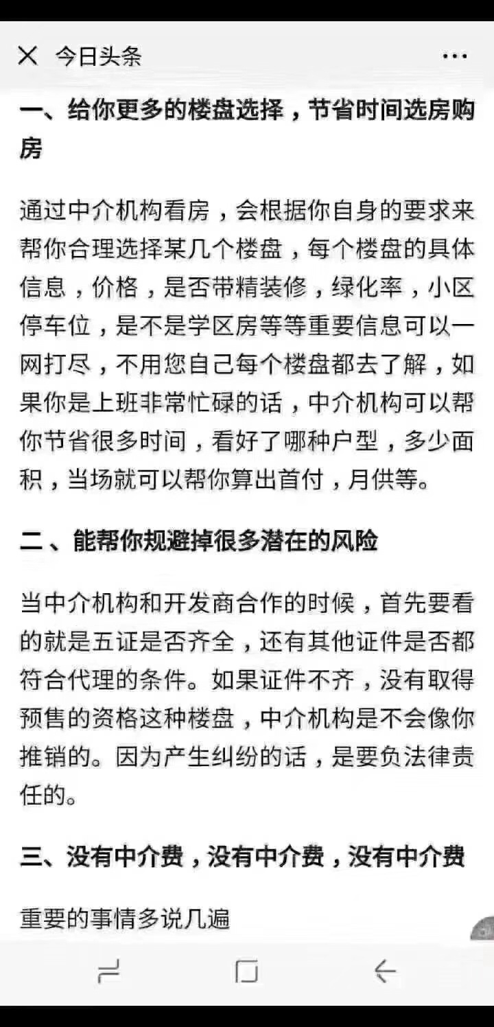通过咱们地产公司购买一手新房,私人专车接送,专业咨询,多个楼盘对比分析一网打尽不用挨个跑,我们不收中介费,我们都是从开发商那里赚佣金,开发商推新盘都还会有团购及特价优惠名额给到我们好推给更多客户去看他的房子!都上头条了。专业的事交给专业的人去帮你做。明白的人自然会找到我们,欢迎咨询:(融汇置业顾问:17325886684梁经理)致此感谢所以信任我们的客户,祝老板早日找到适合心水的房子![抱拳][抱拳][抱拳]