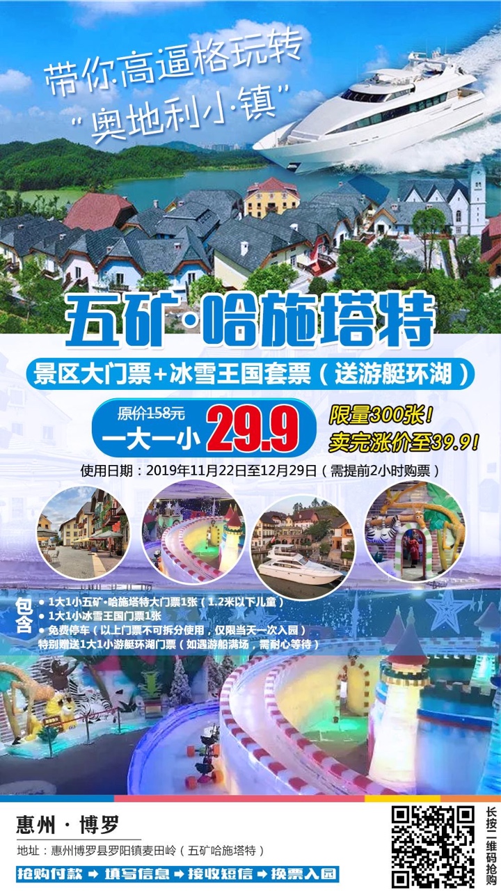 【坐游艇】¥29.9元带你高逼格玩转奥地利小镇!五矿·哈施塔特1大1小大门票+冰雪王国套票!送游艇环湖门票~你来不来~赶紧点击长按图片里的二维码识别下单购买吧