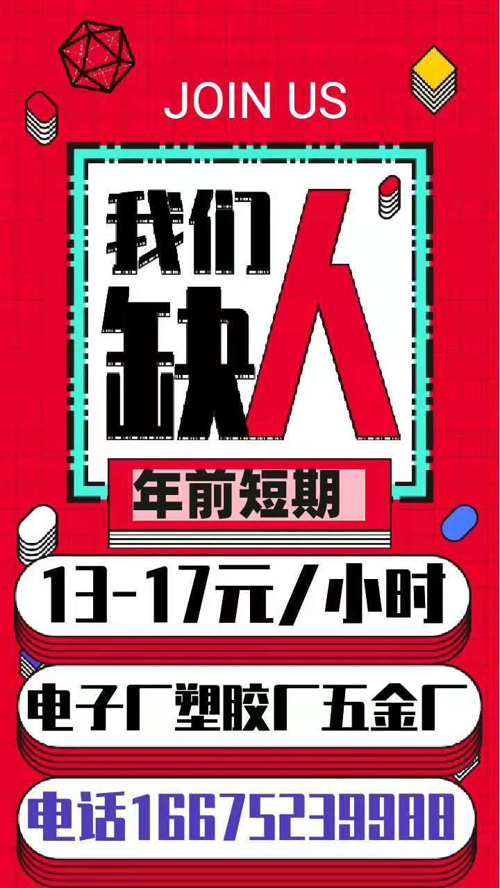 大量招聘临时工,14-15元一个小时包吃包住长白班两班倒都有,做到元月10号左右可以结账回家过年!电话微信:16675239988