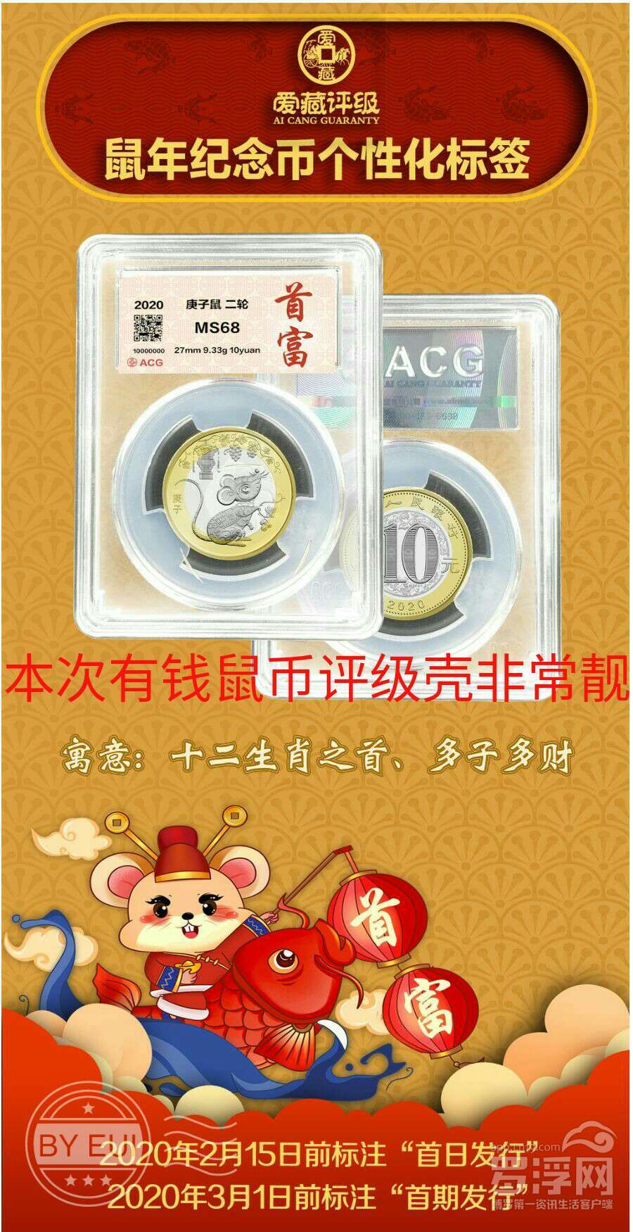 福利:有懂或者喜欢爱藏评级纪念币的吗?本人征集一批鼠年纪念币一同送爱藏评级公司评级,特别是这次有钱鼠首日标特别漂亮,评级装壳永久保存,分越高说明品相越好,收藏更有价值,量大方便评级,有兴趣的加我微信了解