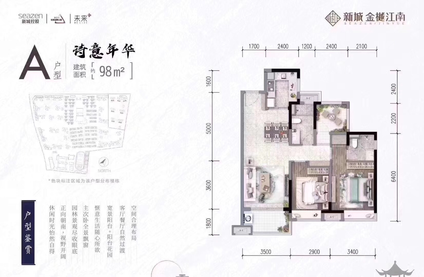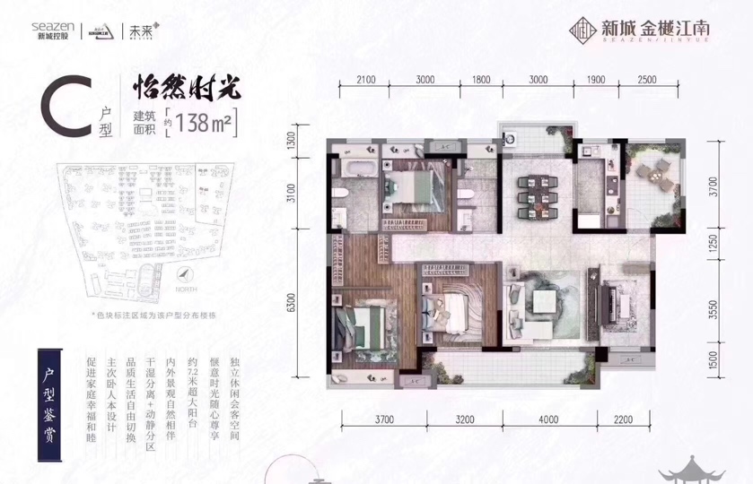 户型98/123/138㎡ 户户朝南 看江景