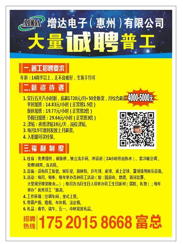 招聘热线:17520158668富生
