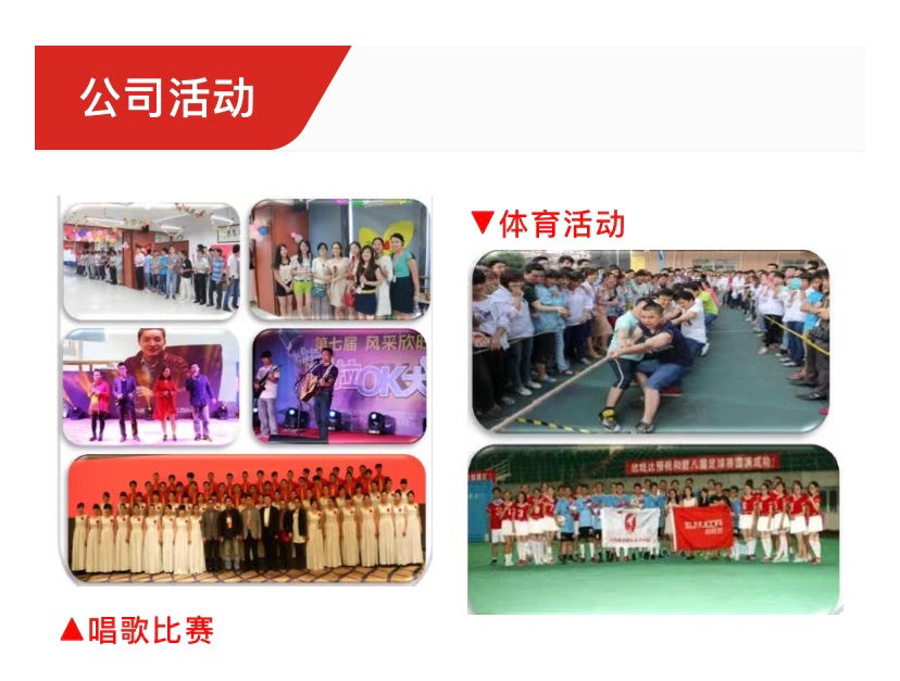 e. 公司不定期举行拔河比赛、游园活动、歌唱比赛,奖金丰厚,丰富员工业余生活;