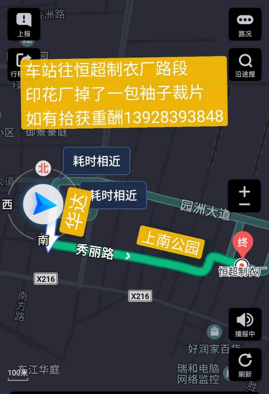 车站往恒超制衣厂路段,印花厂掉了一包袖子裁片,如有拾获,请联系13928393848