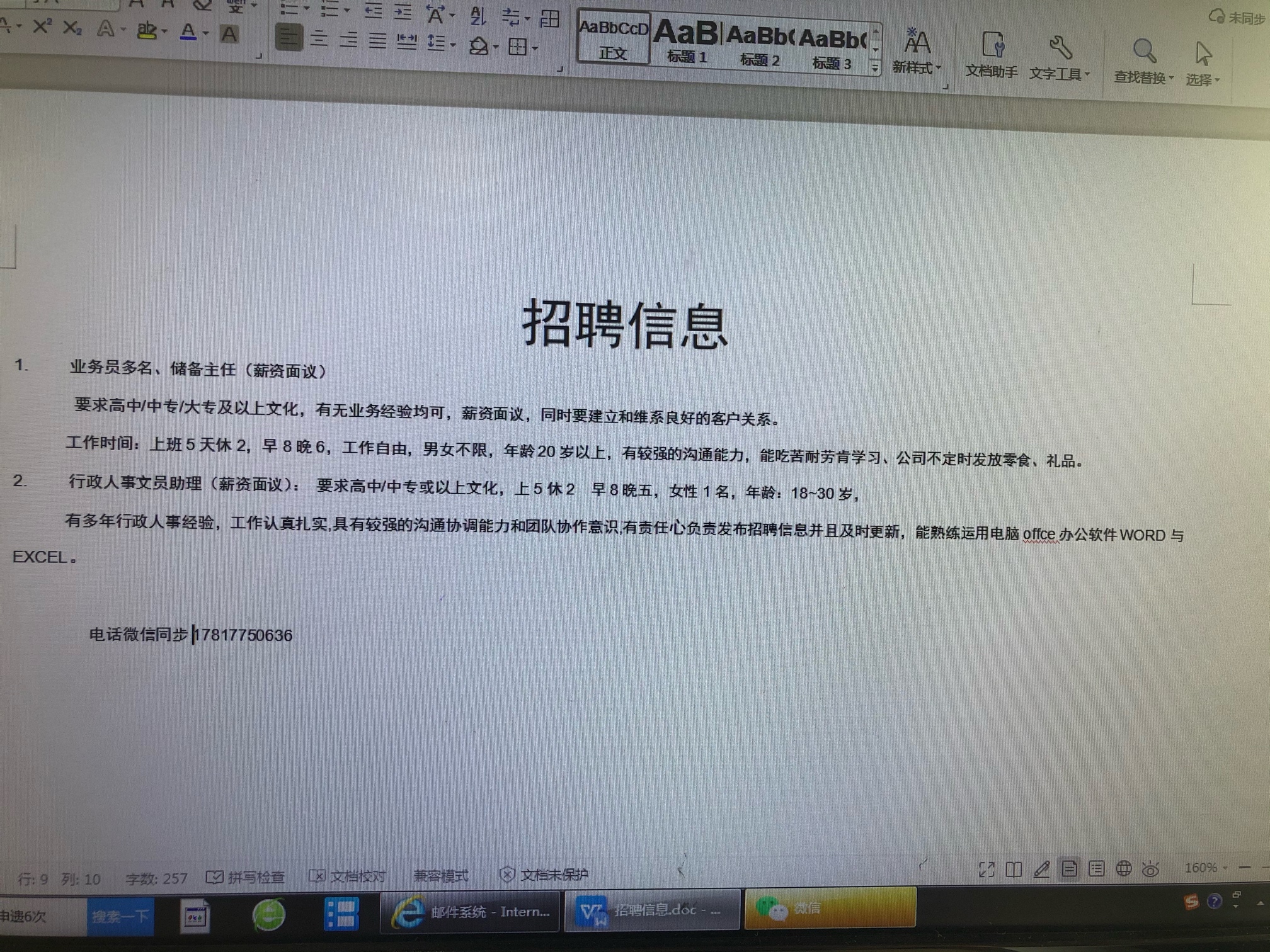 文员助理,业务员,储备主任