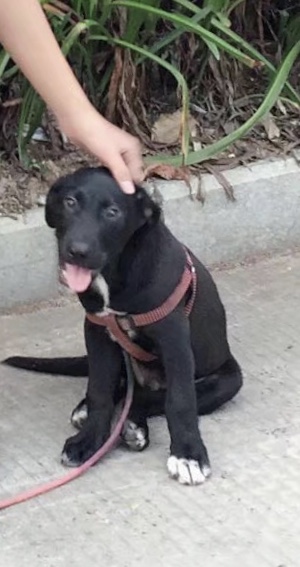 我的一只黑色拉布拉多狗走丢了,它脖子下有白色的毛,左腿前爪毛也有点白色,大家看见了请联系我,现在它一岁多了,照片是五个月的时候照的,谢谢大家
