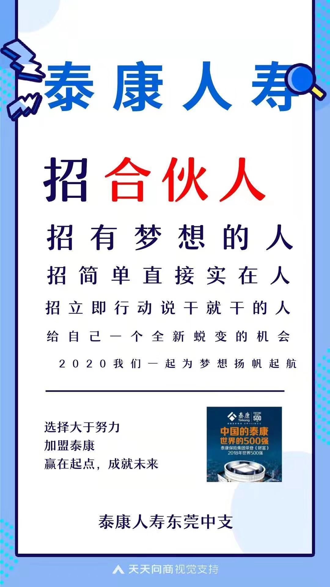 【泰康保险集团】世界500强企业欢迎您的加入。