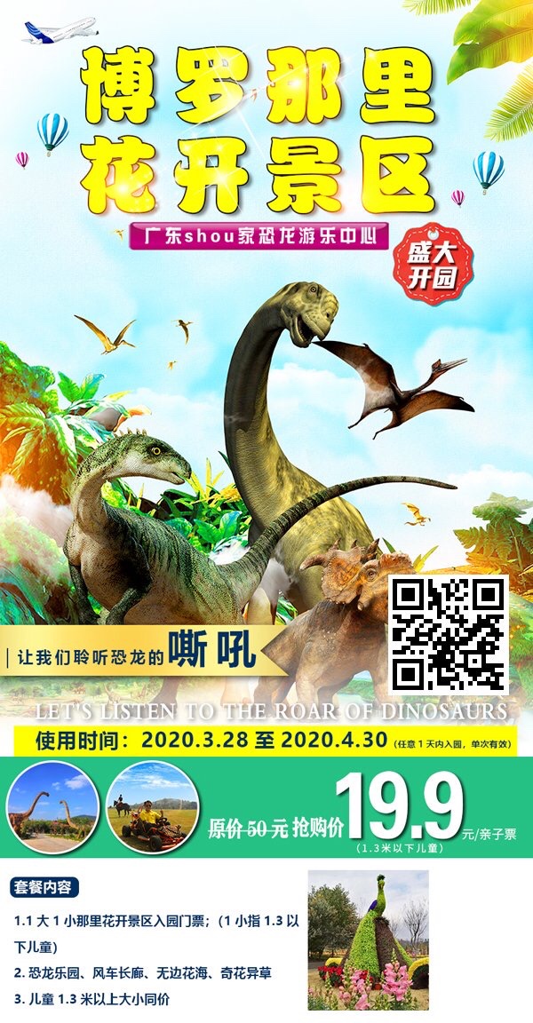 19.9元抢惠州博罗那里花开主题乐园亲子门票!600亩超大恐龙园区“侏罗纪世界”~节假日通用点击长按图片里的二维码下单购买即可[勾引]