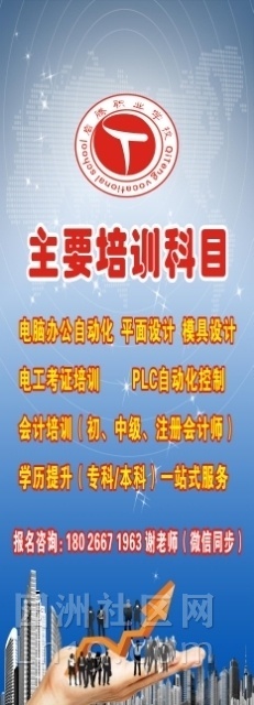 常年开设:电脑培训、办公文秘、平面广告设计,淘宝电商、CAD绘图、产品设计、模具设计、Pro/e产品设计、UG产品设计编程、电工考证,焊工考证,叉车考证等特种工种上岗证,成人大专本科学历,考证入户!会计考证+税务真帐实操