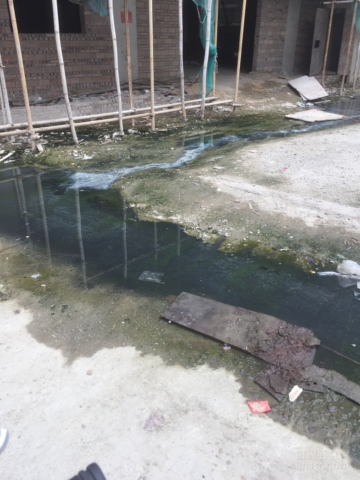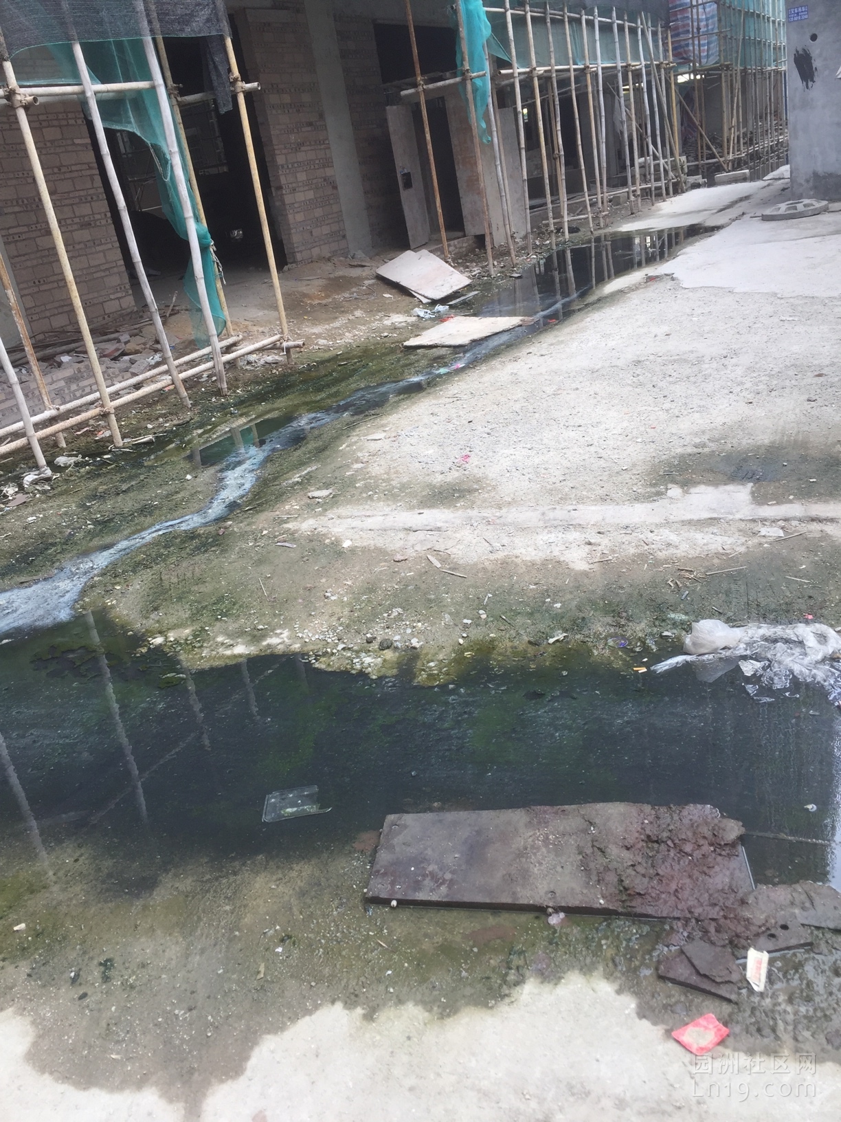 前段时间报道了这里(皇冠酒店后门)的情况,4月30号来人来车整理了一下就走了,现在还是这样,真的很臭,这几天风大,臭气直接随风吹到家里了,真的很难受!希望有关部门出面,解决根本问题