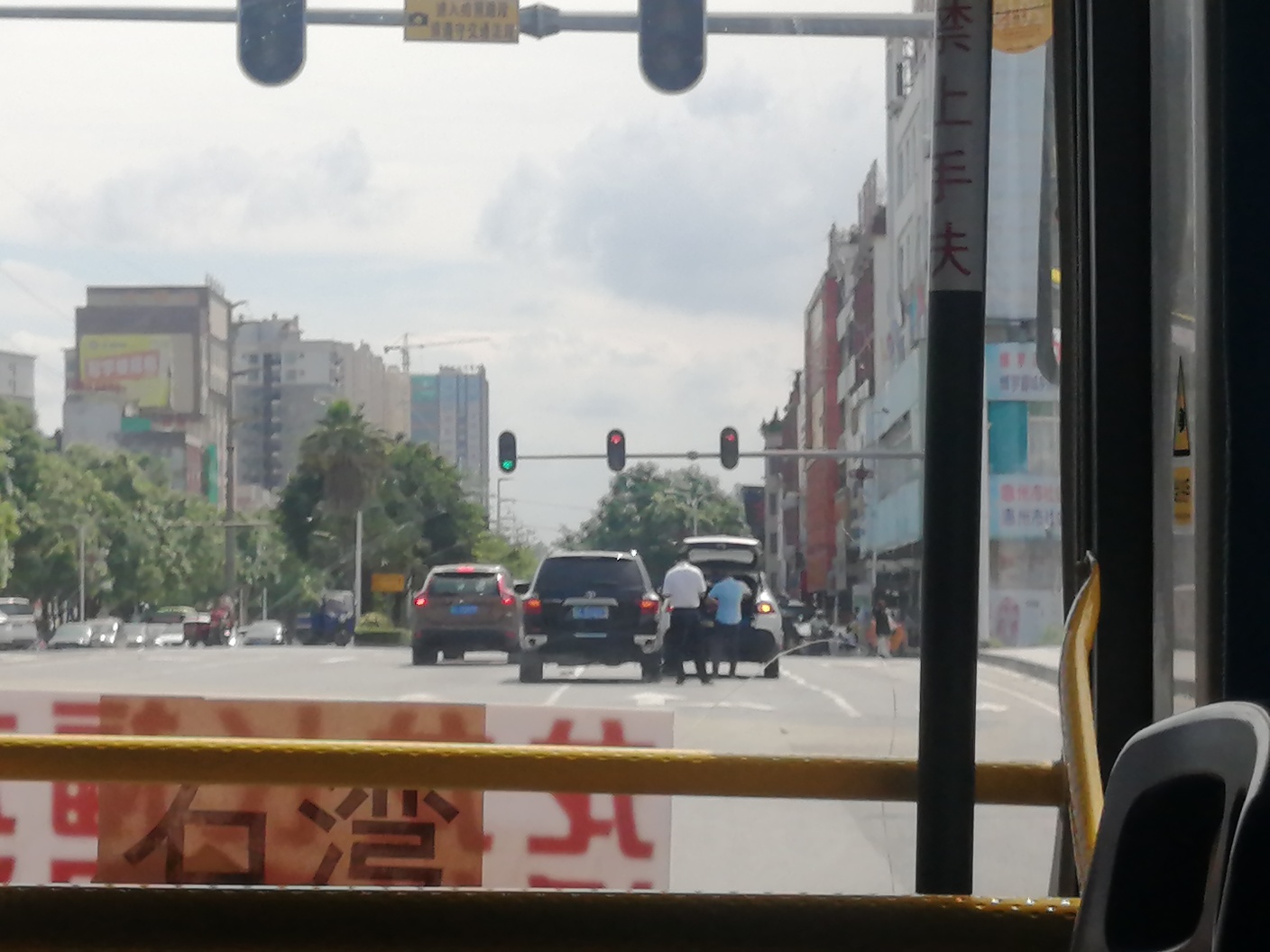 博罗生鸡桥附近两台小车停在路中间开着双杀不知道是不是相互吻了