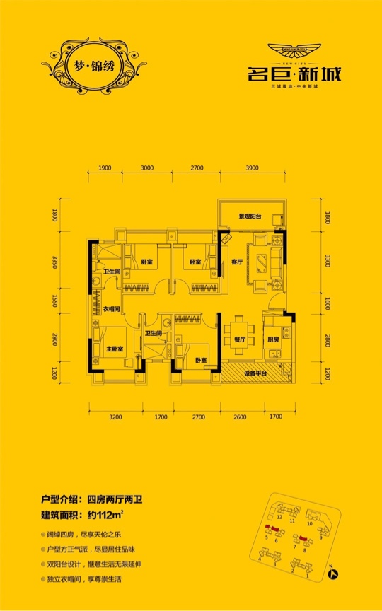 名巨新城112平方米四房,带精装出售,全新准现房,仅此10套,均价10500、先到先得,免佣金