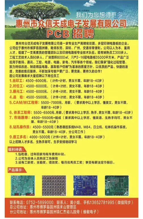 招普工多名,男女不限,工资4500至5500元,包吃住,两班倒