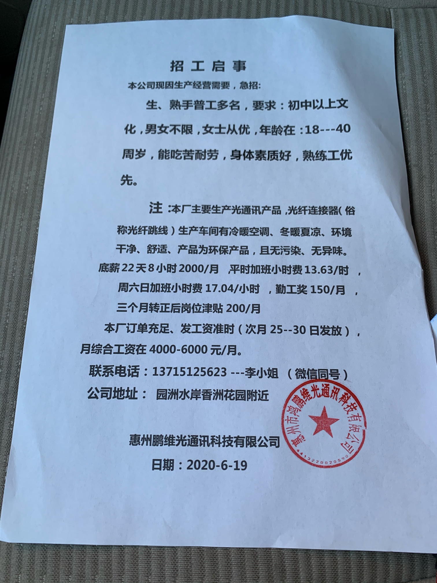 大量招聘男女普工