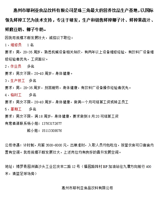 招聘暑期工、临时工