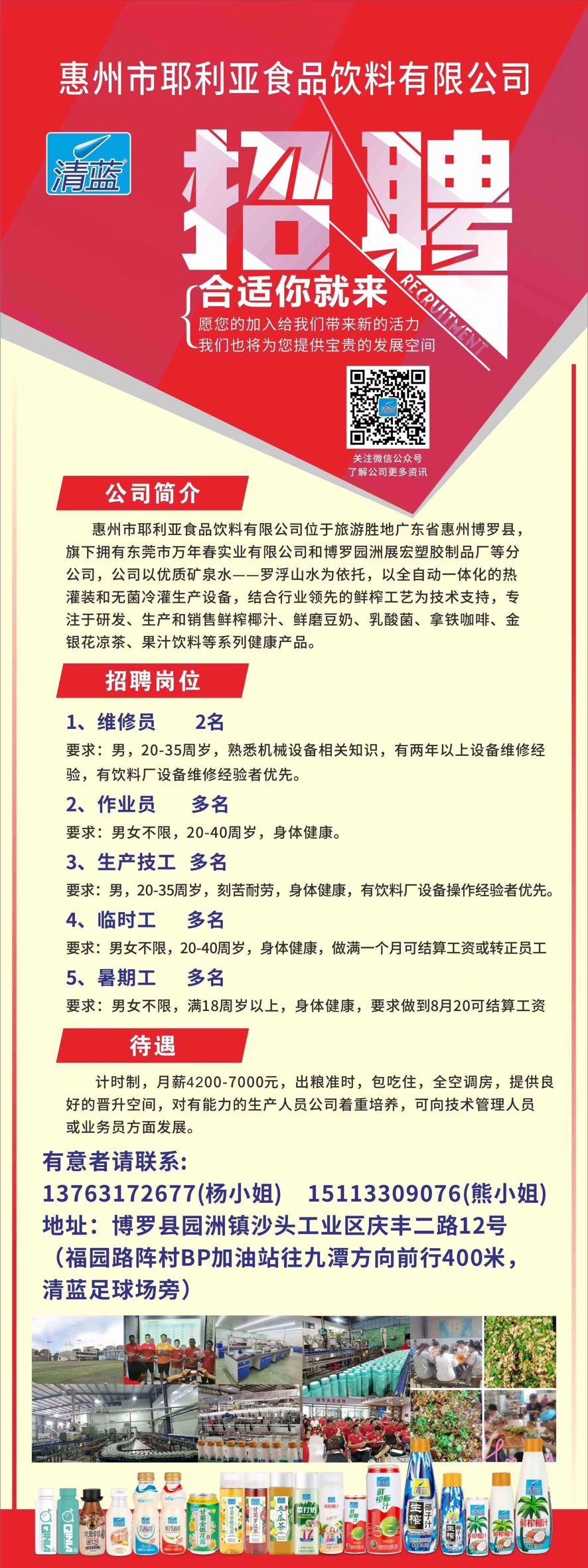 公司直招维修员、多名普工