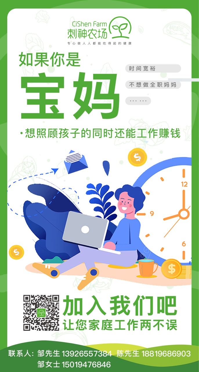 二,成为我们的社区合伙人。发展所在社区和周边社区的邻里一起团购,让更多人吃上健康食材。(如果已经在业主群,邻里群,妈妈群或者以前做过微商,有社区客户资源,可以以此为起点召集第一批邻里),开启大农业事业。13926557384邹生