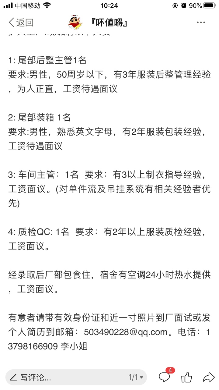 惠州市浚汇服装有限公司招聘