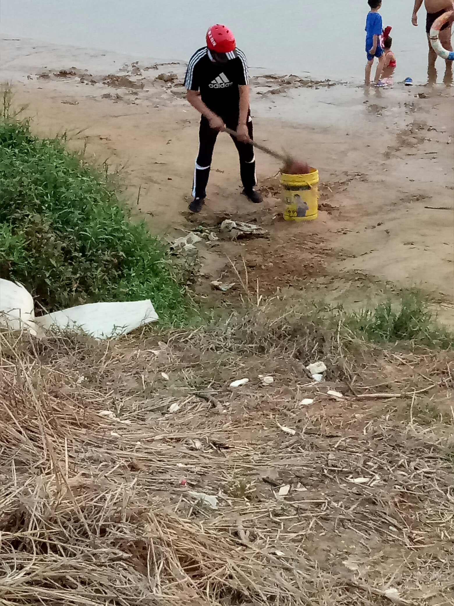 今天在江边看到这位园洲江边水上救援队在江边值班,看到江边垃圾等拿桶装好清理干净,值得大家学习的,园洲生活靠大家,环境卫生一小步,美丽园洲一大步,美丽新园洲人人爱,垃圾不落地更精彩。
