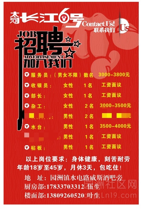 地址:园洲镇水电路威斯酒吧旁厨房部:17833703312伍生楼面部:13809260520叶生