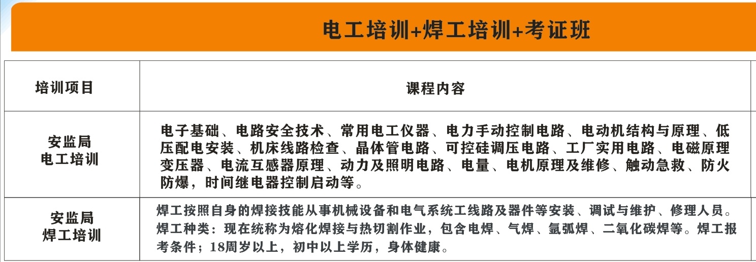 《电工考证班》《焊工考证》《叉车证》