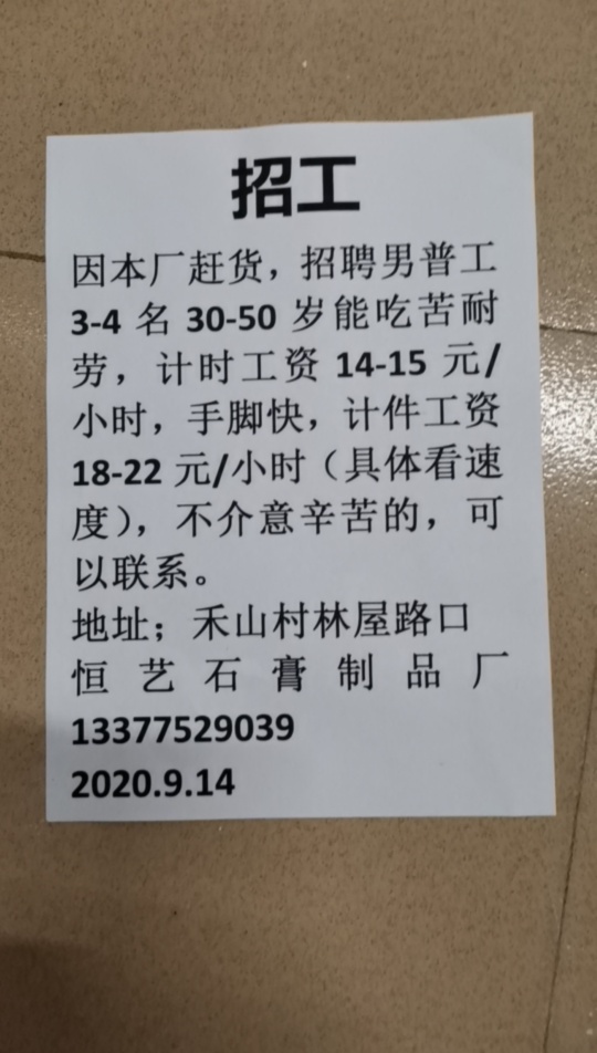 招聘男普工