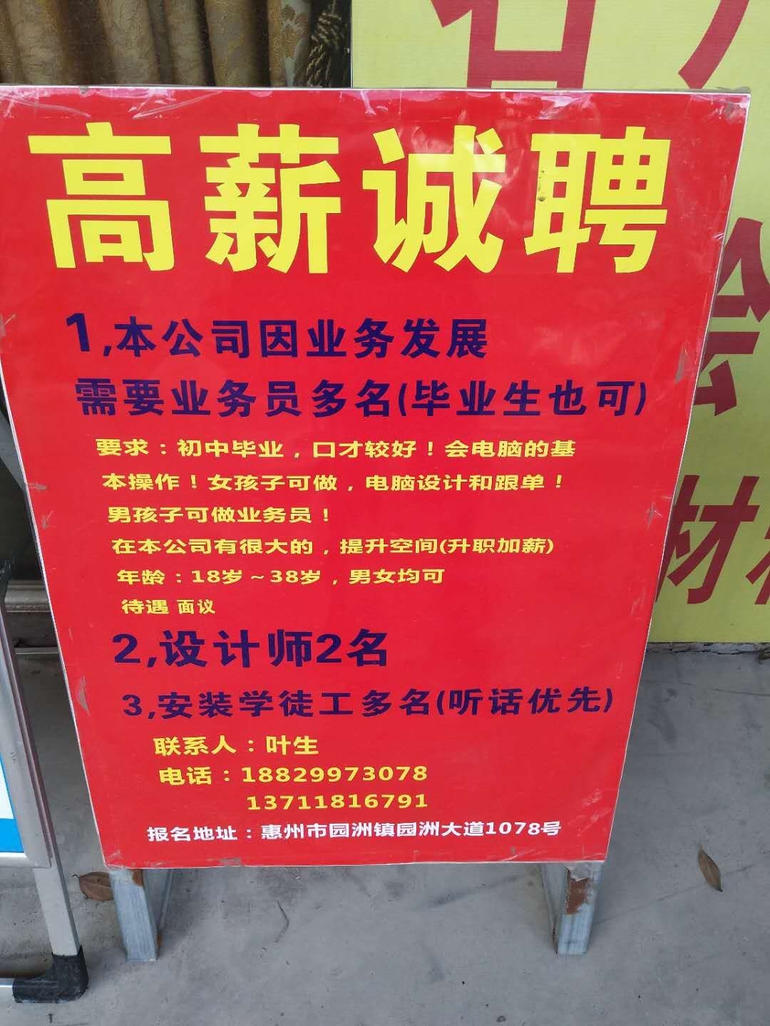 广告公司,招聘设计、安装、安装学徒。18829973078 叶生