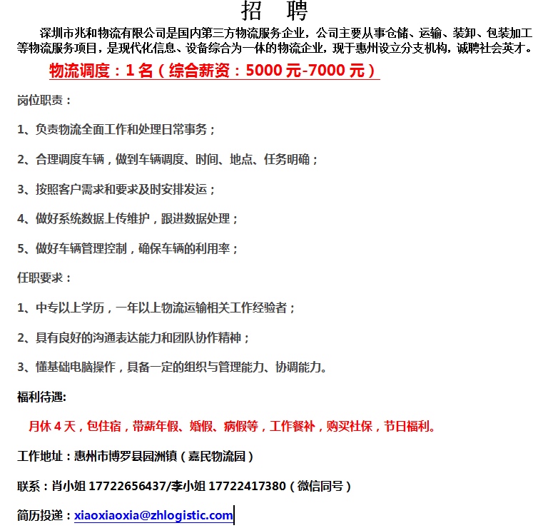 诚聘物流调度(应届生均可)