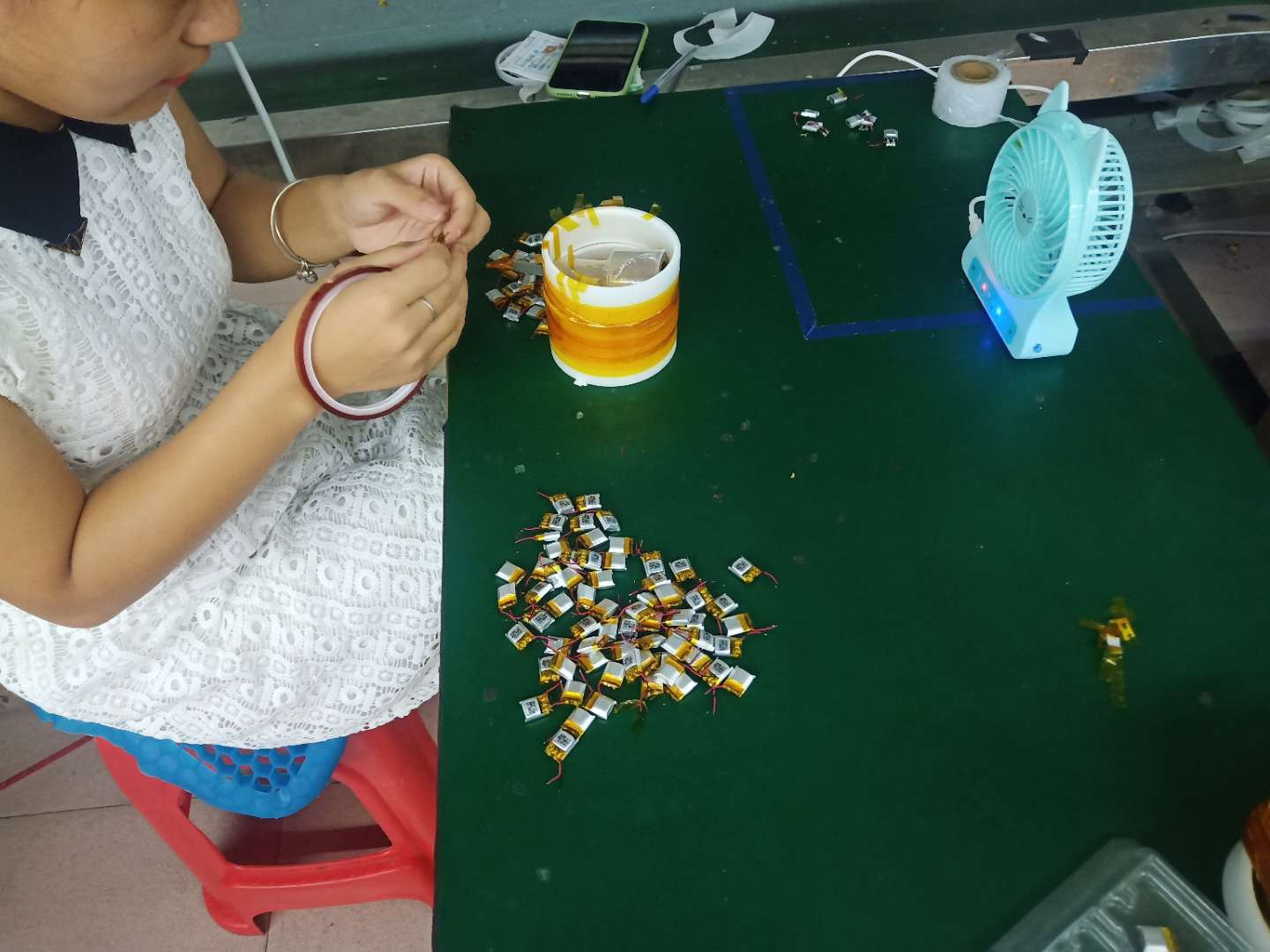 本公司主要加工小聚合物电池,职位有焊锡(加板,加线),折板,绕头胶,工作简单,容易上手,车间环境好,待遇优,包食宿。以个人计件为主,生手需培训7-14天(培训期12/时),"过后计件工资可达4500-8000元,地址在上南,联系电话15807696031《微信同号》