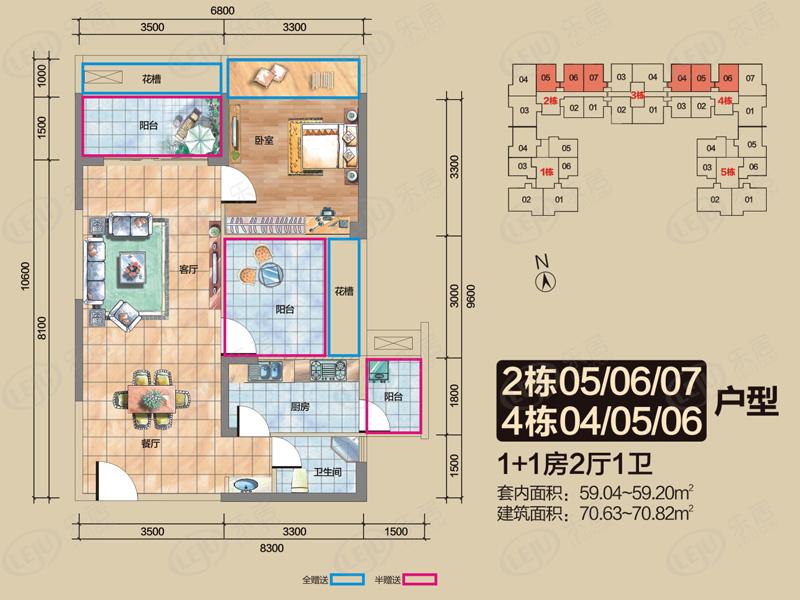 中楼层,采光视野好,2米的大阳台,满2年